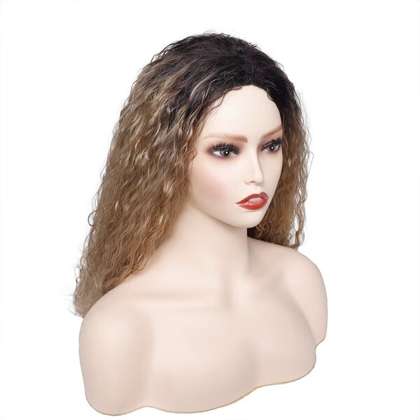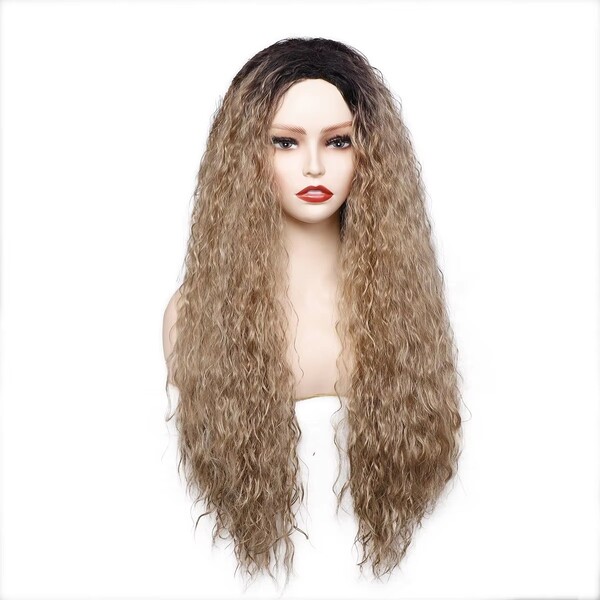 2Pcs Womens Blonde Brown Gradient Wave Synthetic Wig