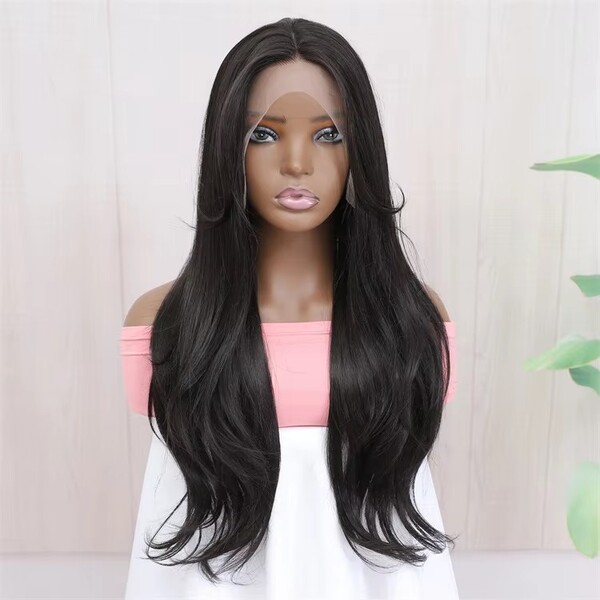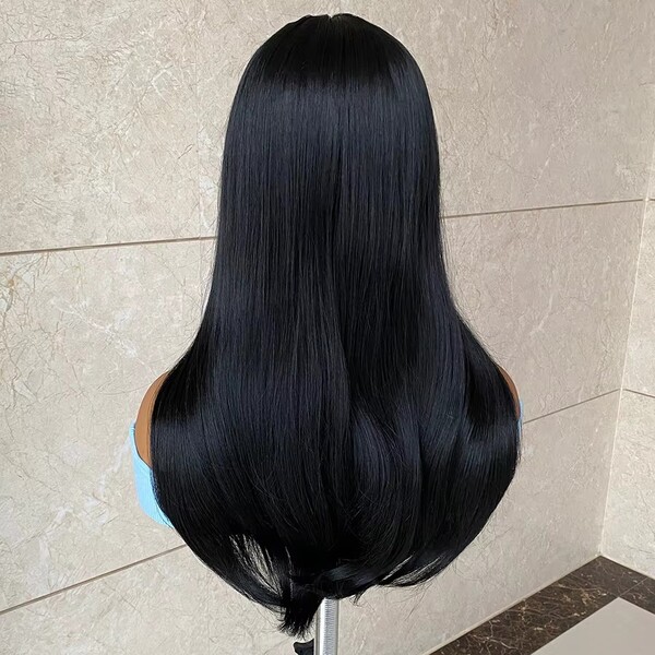 2Pcs Womens Natural Straight Hair Glueless Synthetic Lace Wigs