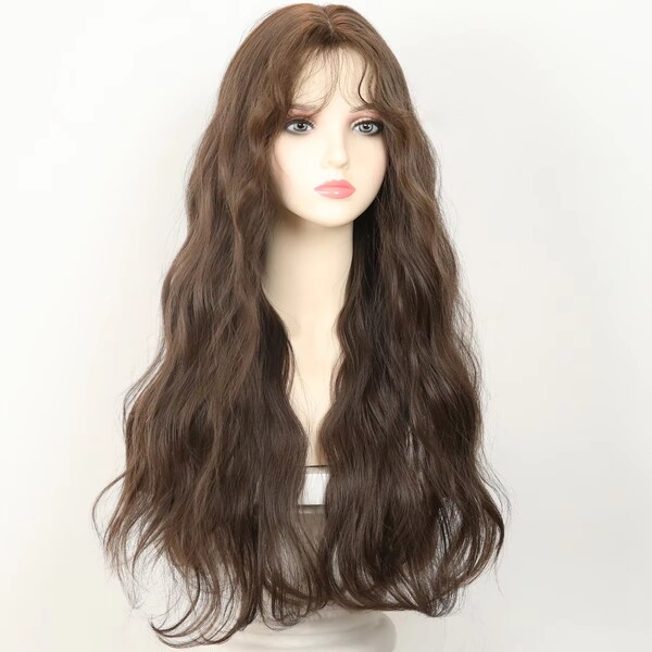 11Pcs Womens Brown Long Wavy Synthetic Wig