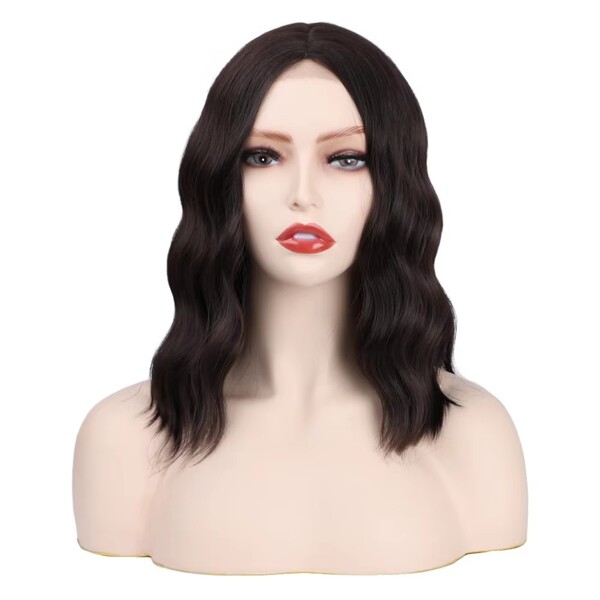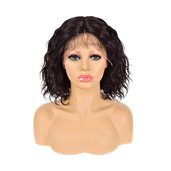 Womens Center Parted Water Ripple Short Bob Head Human Hair Wig