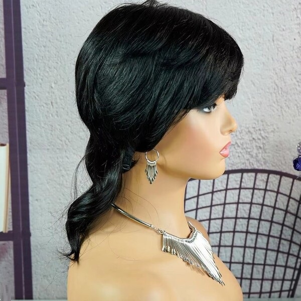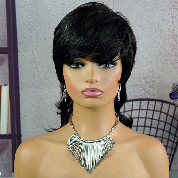 2Pcs Womens Short Curly Straight Tousled Layered Fluffy Mullet Wig