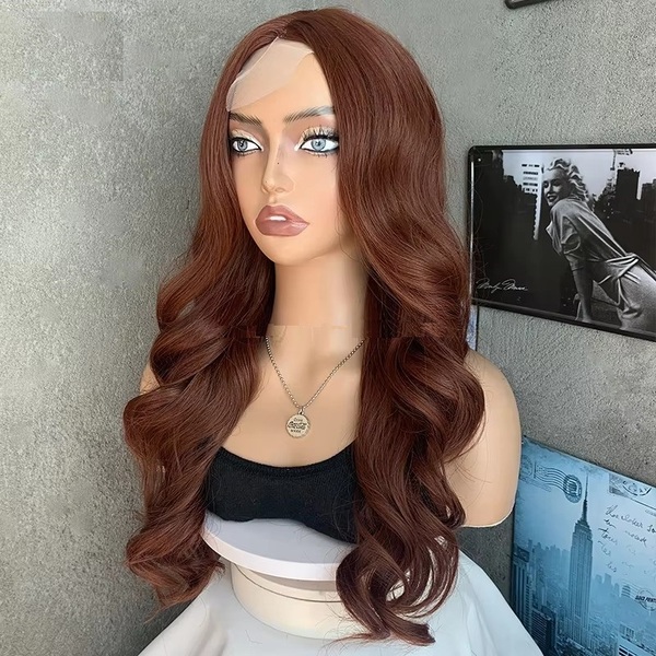 4Pcs Brown Curly Lace Edge Synthetic Hair Wig
